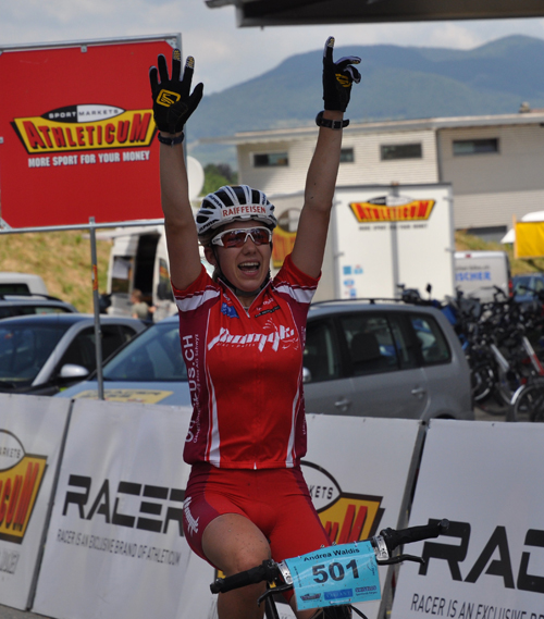 Die anspruchsvolle und technisch schwierige 4.2km lange Strecke galt es viermal zu fahren. Andrea Waldis übernahm nach dem ersten Aufstieg die Führung und konnte in der ersten Abfahrt schon einen beträchtlichen Vorsprung herausfahren. Von Runde zu Runde erweiterte sie ihren Vorsprung, sodass sie mit einer Gesamtzeit von 1h 1`40“ und mit knapp zwei Minute Abstand ins Ziel fuhr.